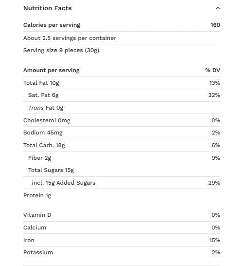 Contains milk. May contain peanuts, hazelnuts, almonds & coconut.