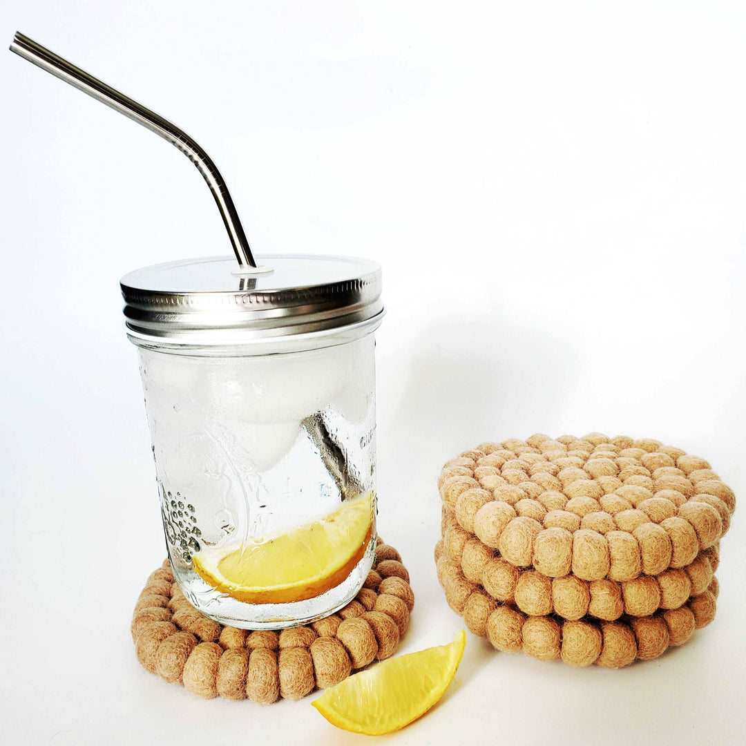 Heather Grey Handmade Felt Pom-Pom Coasters
