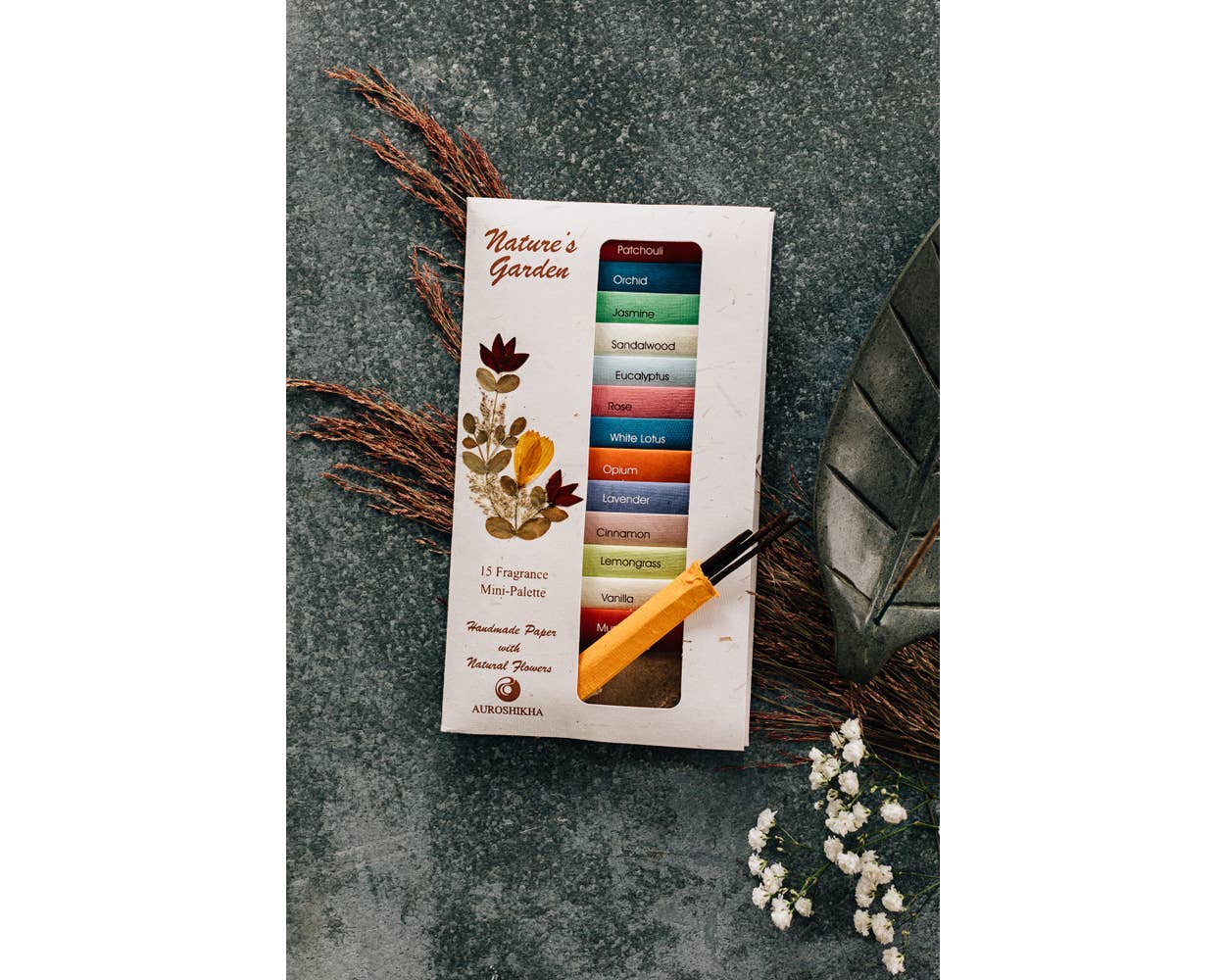 This Nature's Garden Incense set features 15 incense varieties, providing scent for a variety of moods.
