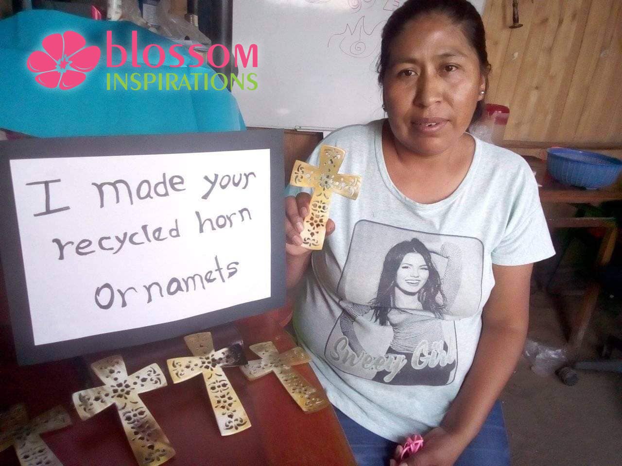This eco-friendly handmade horn ornament is made from natural discarded and recycled bull horn crafted by Peruvian artisans.