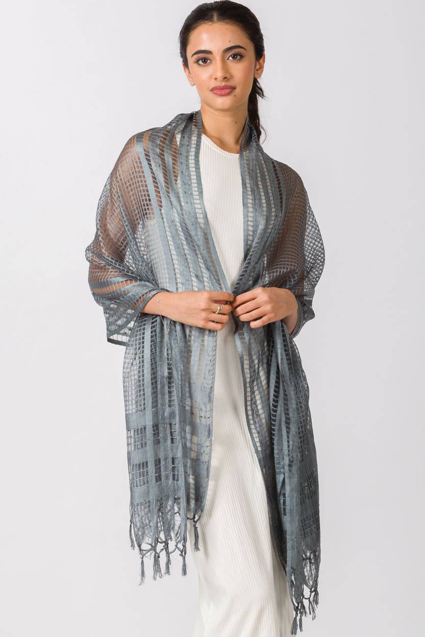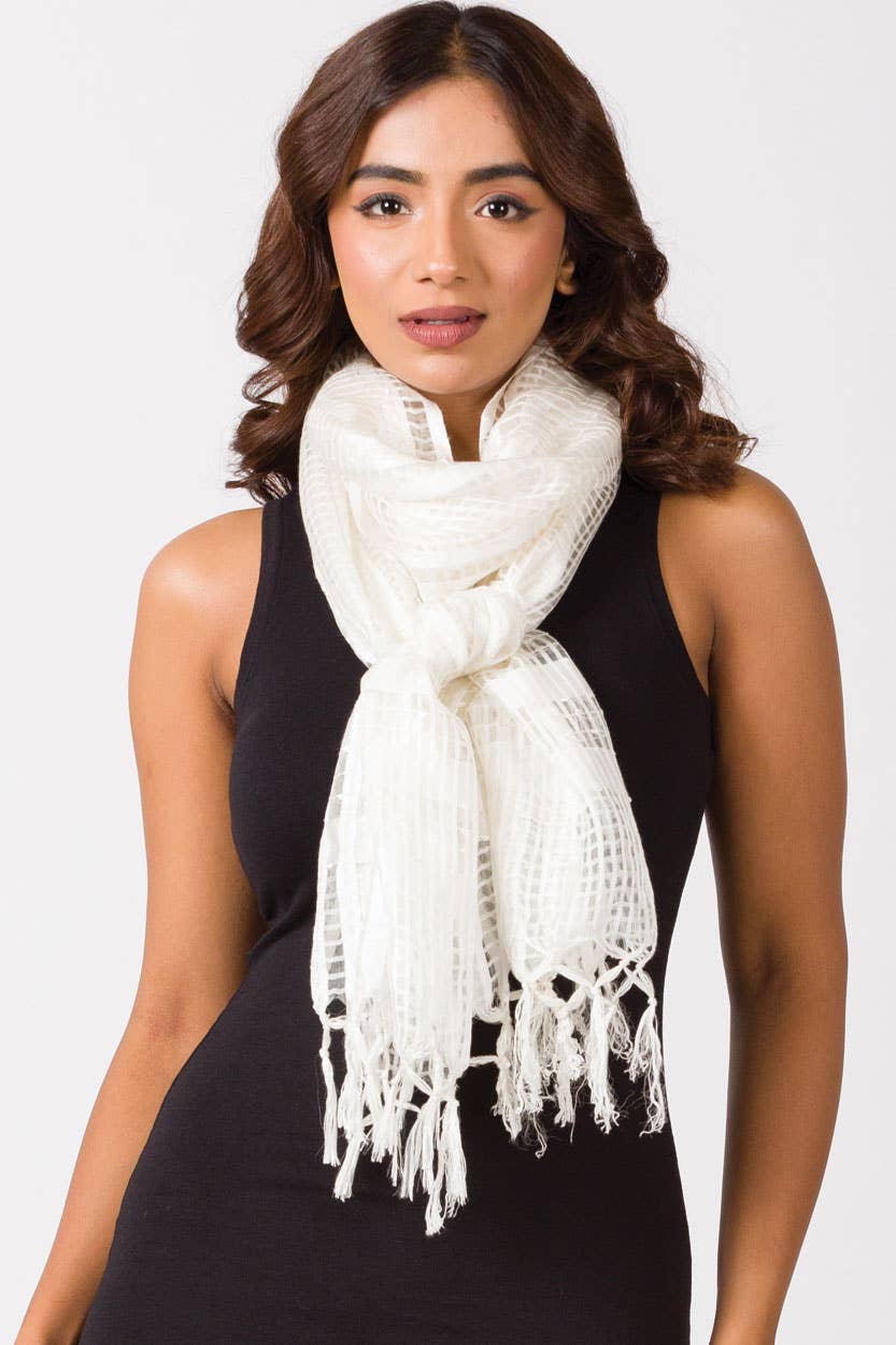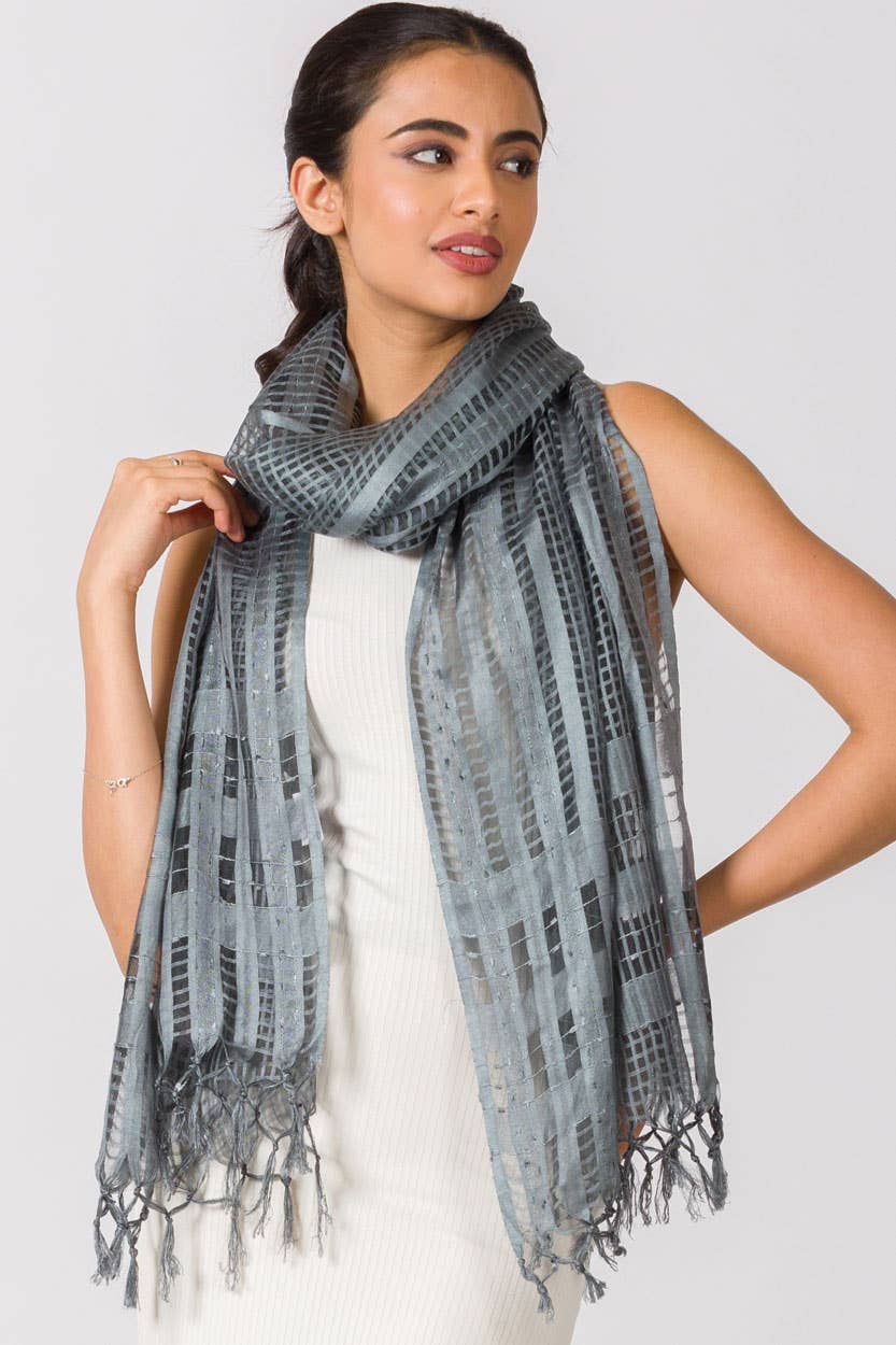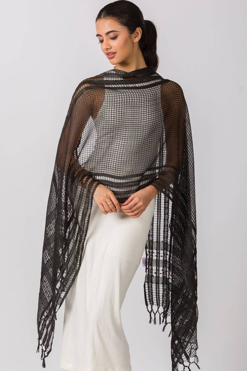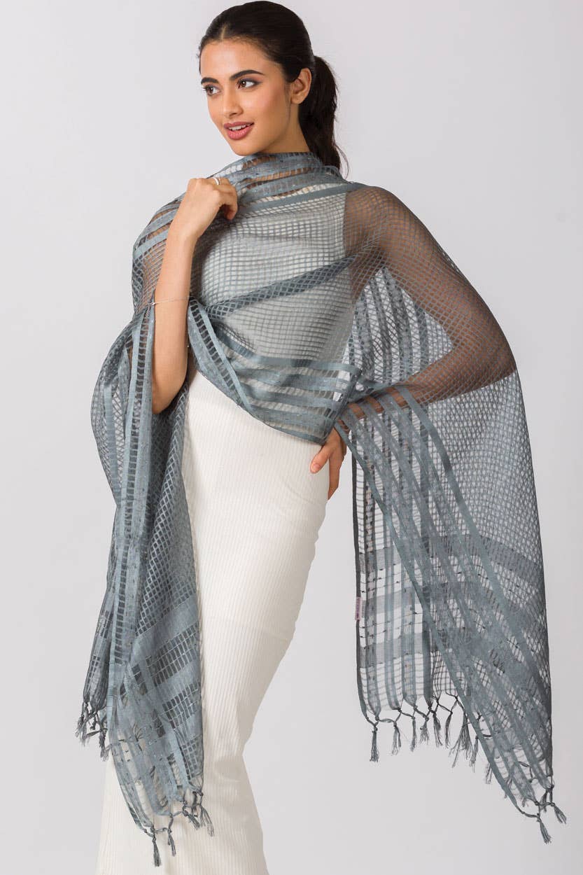 Our Sarita Scarf is woven with fine viscose and silk in a stunning windowpane weave. This fair trade scarf comes in a range of colors and showcases the fine weaving traditions of Eastern India. The sheer weave with soft yarn makes it a versatile accessory that can be worn in a variety of ways throughout the year.