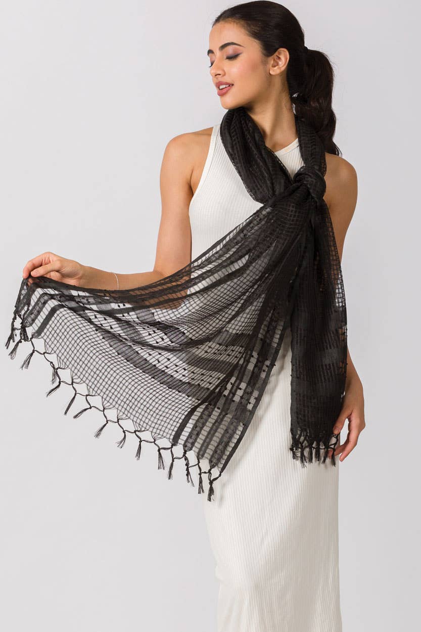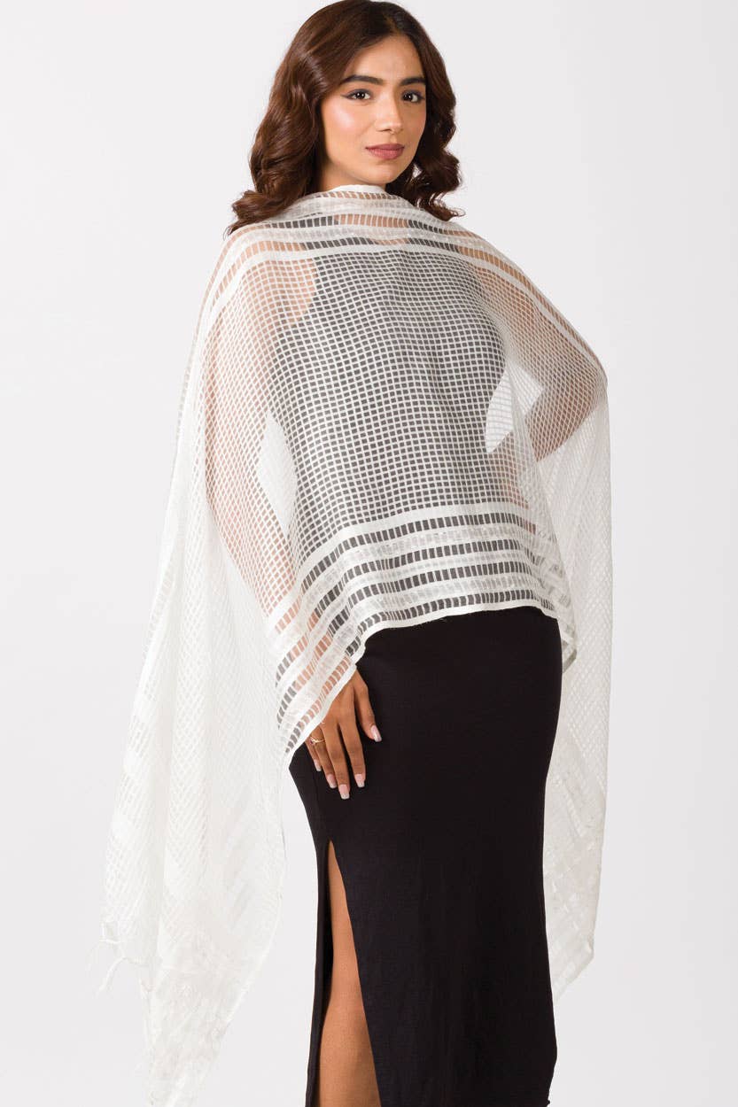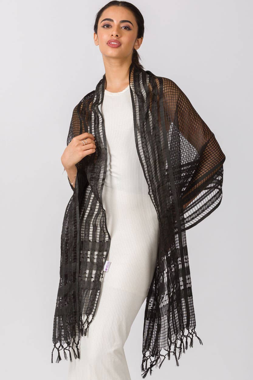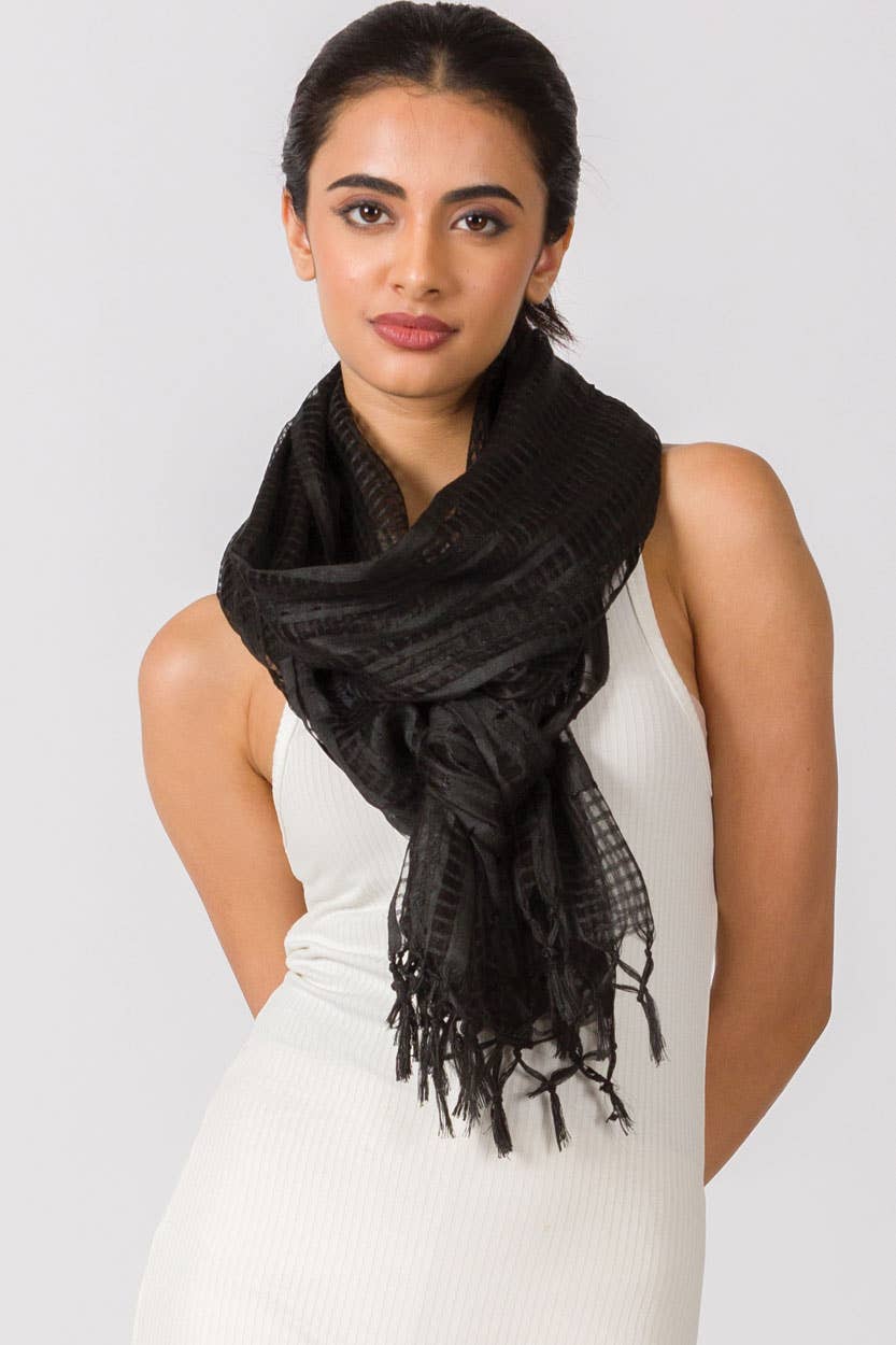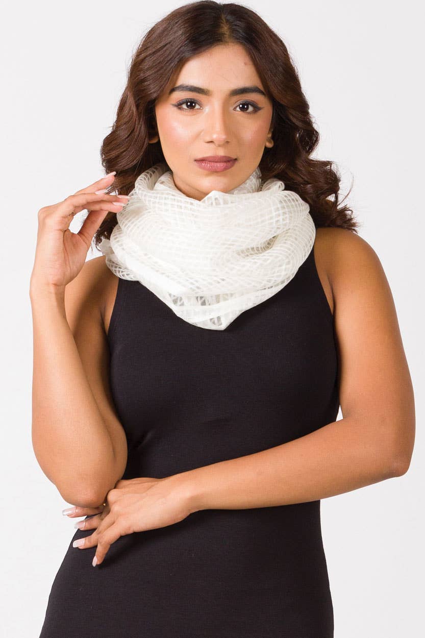 Our Sarita Scarf is woven with fine viscose and silk in a stunning windowpane weave. This fair trade scarf comes in a range of colors and showcases the fine weaving traditions of Eastern India. The sheer weave with soft yarn makes it a versatile accessory that can be worn in a variety of ways throughout the year.
